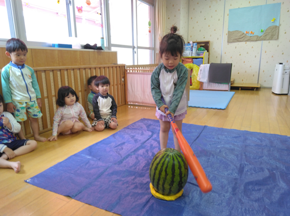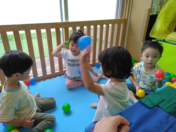 ボール投げやボール転がしなど、ボールを使ったあそびに夢中になっているたんぽぽぐみです☺七夕まつり、すいかわりにも参加してたくさん楽しんでいましたよ♫