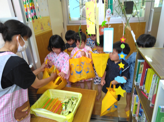 七夕まつりやすいかわりに参加して楽しみました!!自分でおやつを食べたり歩くのが上手になったりと、元気いっぱいに過ごしています✨