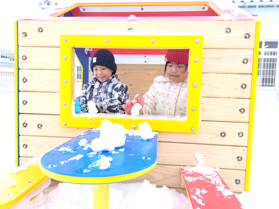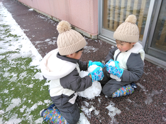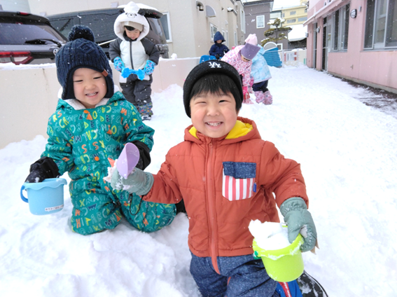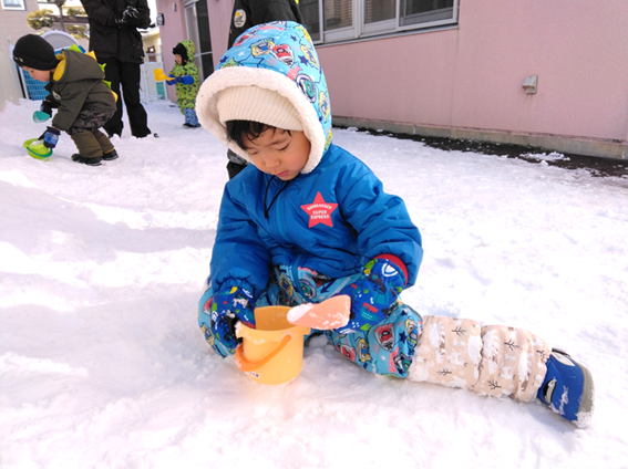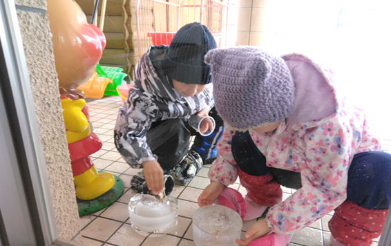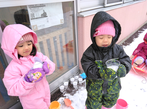 園庭で雪遊びをしたりホールで大型かるた大会をしたりと楽しんで遊びました!!氷づくりにも挑戦しました♪