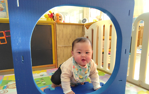 ハイハイやつかまり立ち、指先を使った遊びなど様々なことができるようになり、楽しんで過ごしています♡