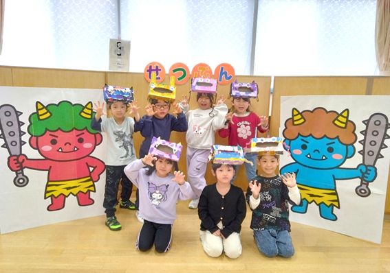 豆まきをしたり氷に触れたりして遊びましたよ☆お友達と一緒に遊ぶことを喜び会話をしながら楽しんで遊んでいます!!